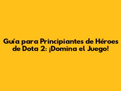 Guía Para Principiantes De Héroes De Dota 2: ¡Domina El Juego!