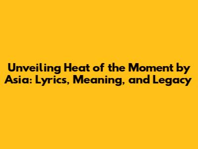 Unveiling 'Heat Of The Moment' By Asia: Lyrics, Meaning, And Legacy