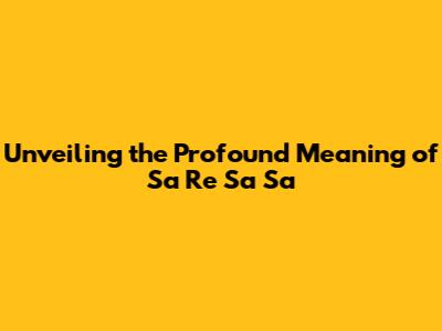 Unveiling The Profound Meaning Of Sa Re Sa Sa